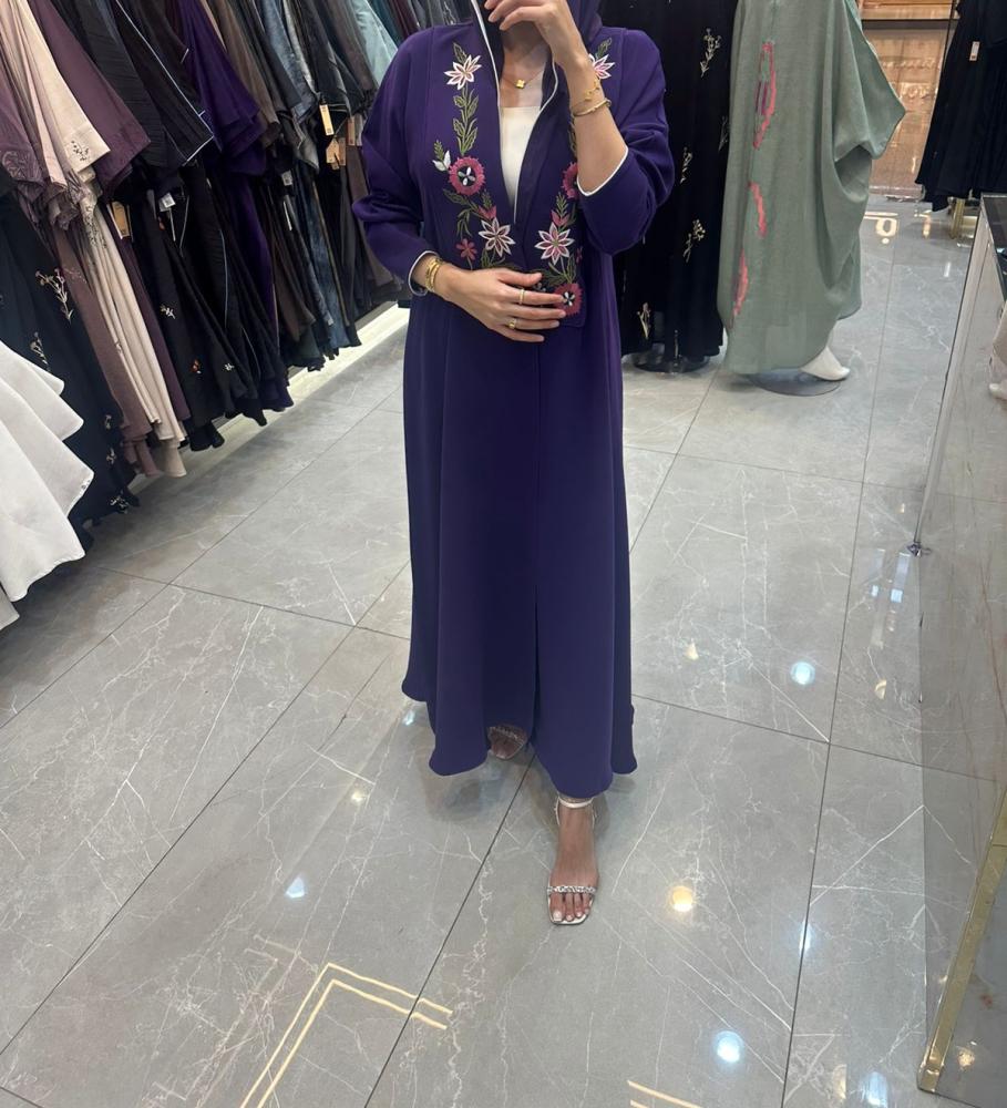 "عباءة شك يدوي مطرزة بدقة، مصممة من المخمل الفاخر. تتميز بالتصميم الفريد والألوان الزاهية. التفاصيل الدقيقة مثل الخيوط الذهبية تجعلها عباءة فاخرة وجذابة."