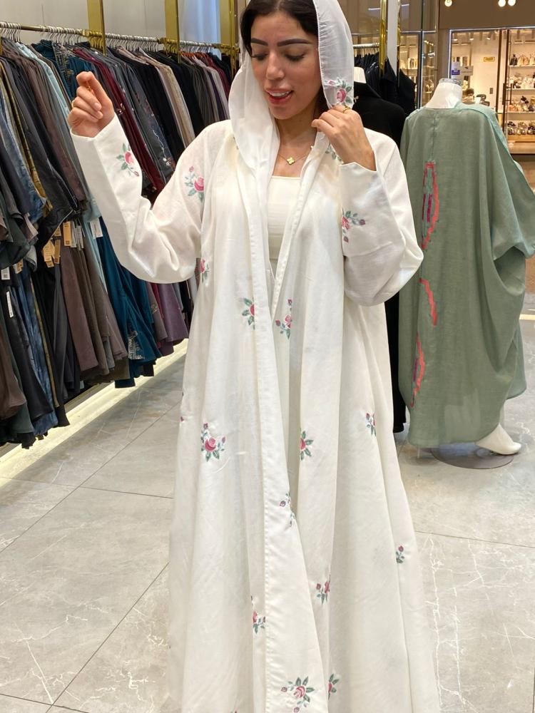 عباءة قصة كلوش لون أبيض تطريز كومبيوتر هي عباءة أنيقة وجميلة، تتميز بلون أبيض نقي ومفعم بالأناقة. إليك بعض التفاصيل حول عباءة قصة كلوش لون أبيض تطريز كومبيوتر: