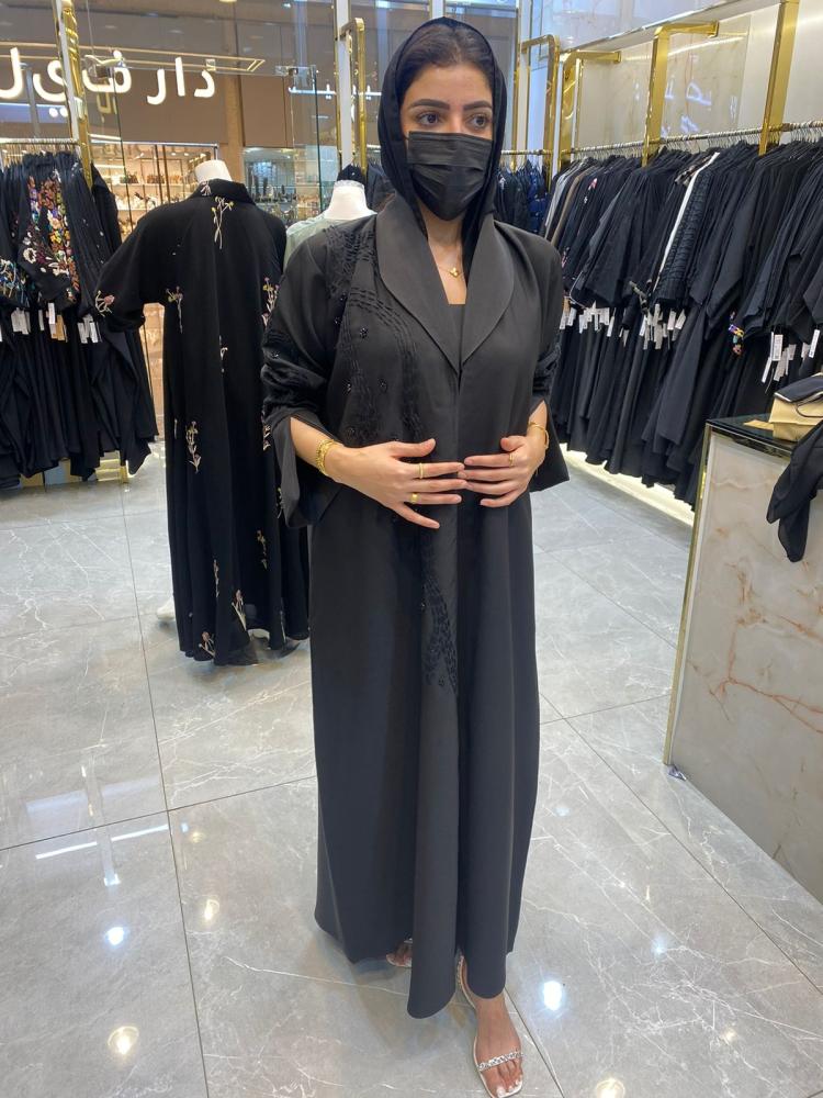1. المادة: عباية فاخرة من المخمل أو الحرير أو القطن.